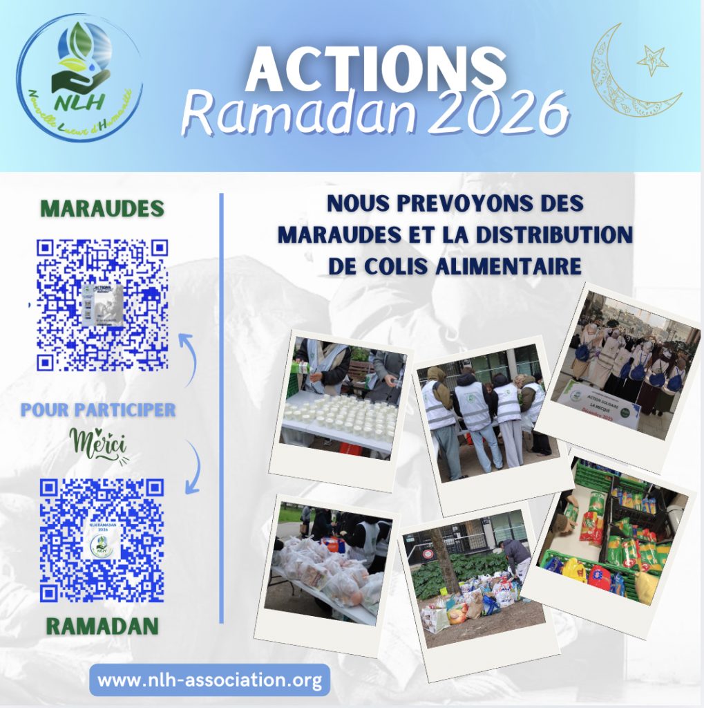 Nous renouvelons nos actions pour ce Ramadan 2026. Votre soutien à l’Association NLH est donc précieux. Chaque don contribue à alléger le fardeau de ceux qui traversent des moments difficiles. En faisant preuve de générosité aujourd’hui, vous apportez une lueur d’espoir aux foyers touchés par l’adversité.